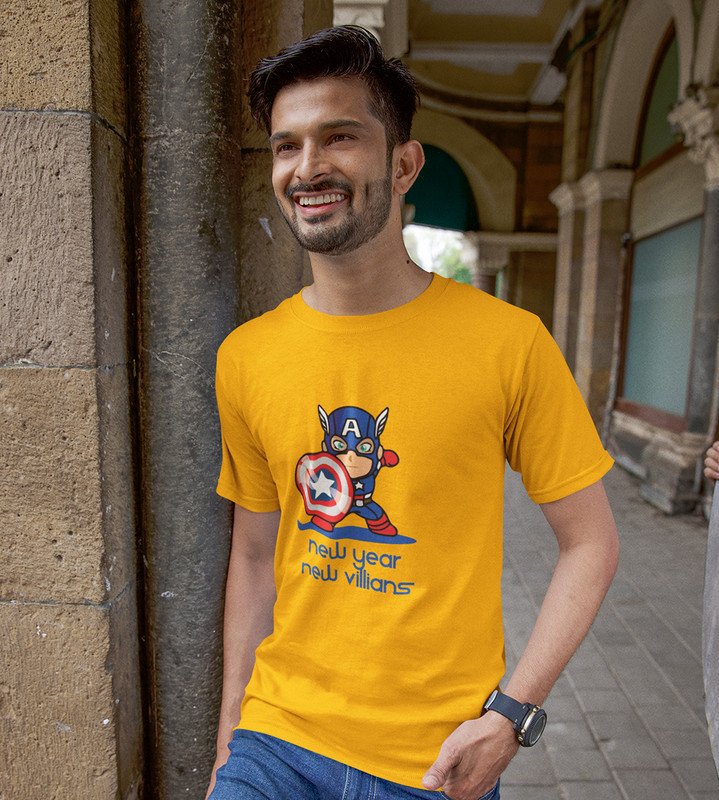 New Year New Villans Yellow Men Printed T-shirt For Mens Boys