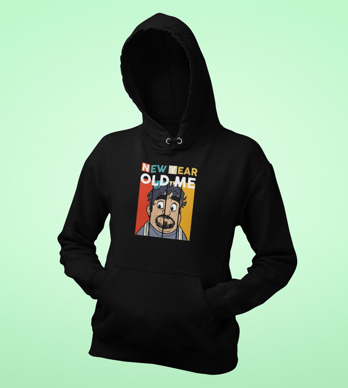 New Year Old Me, Black New Year Printed Hoodies For Mens
