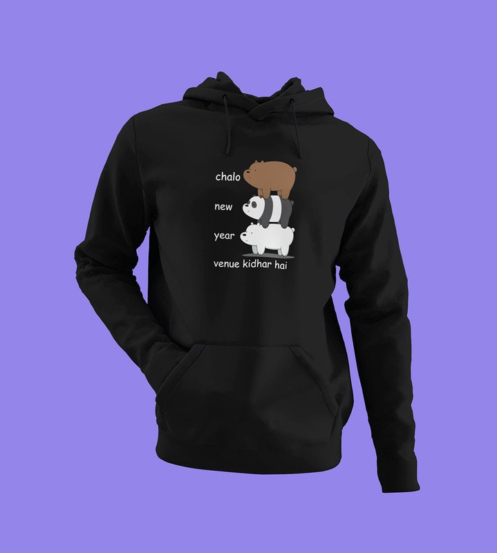 New Year Party, Black Graphic Printed Hoodies For Mens Boys