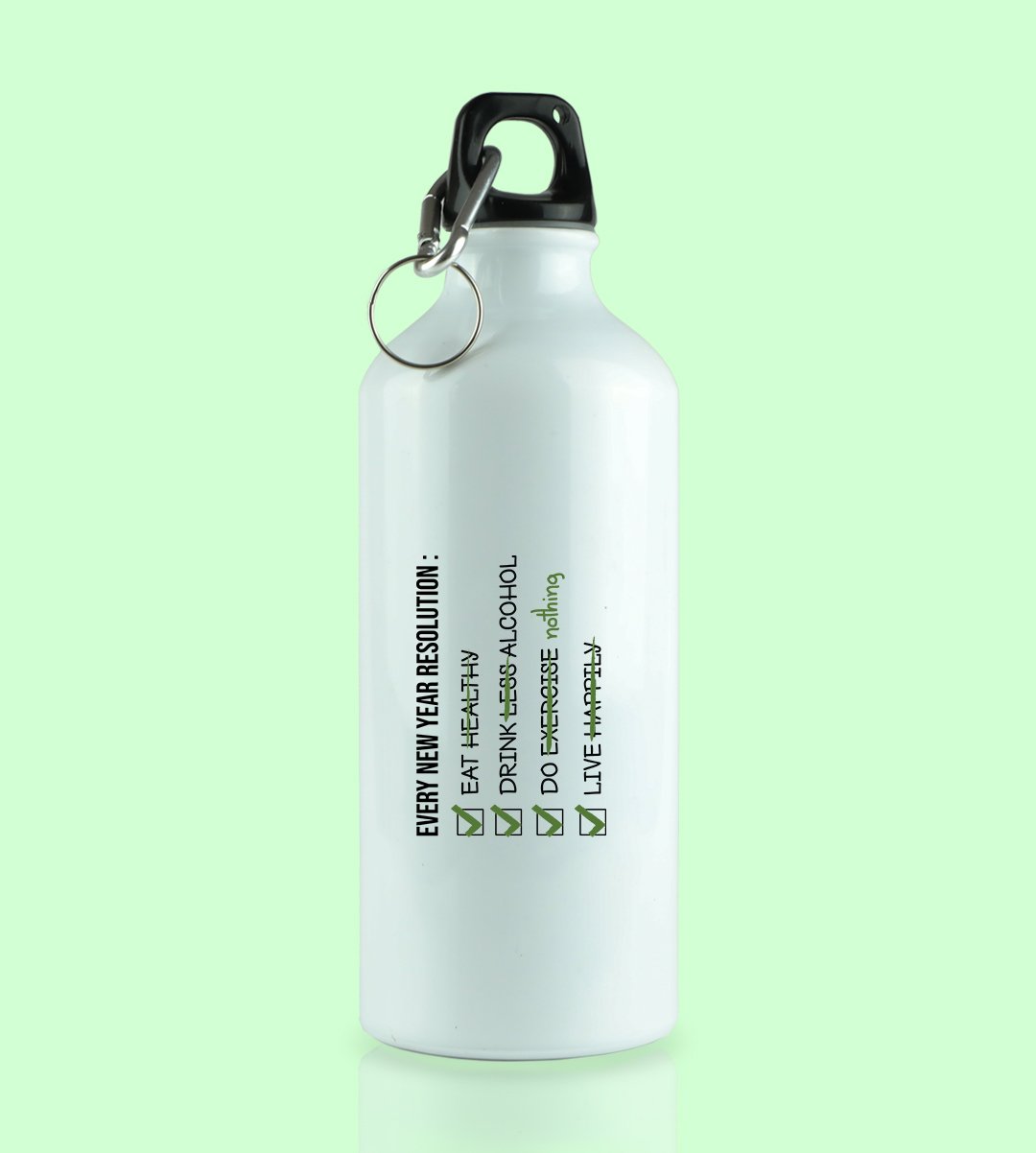 New Year Resolution, Men's Printed Sublimated Aluminium Water Bottle