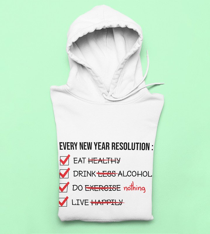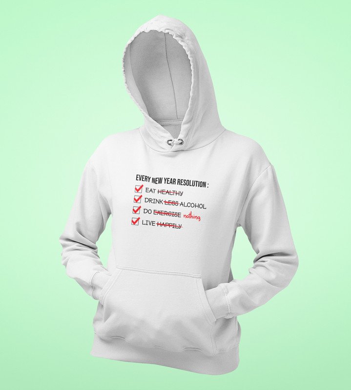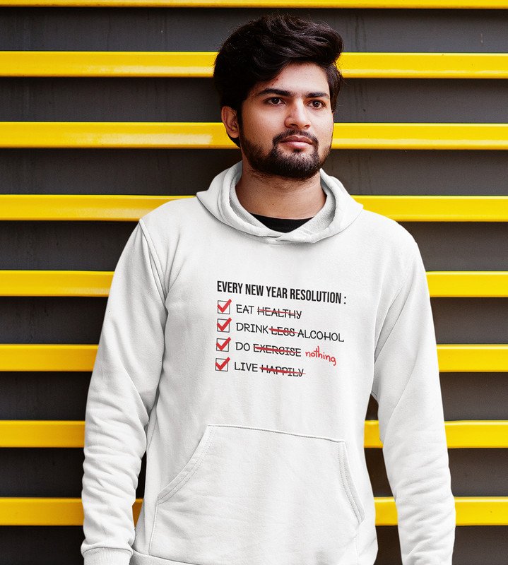 New Year Resolution, White Men Printed Hoodies For Mens Boys
