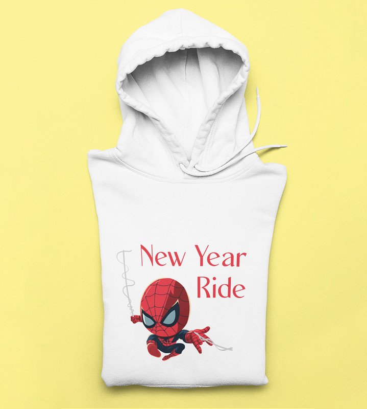 New Year Ride, WhitePrinted Hoodies For Mens On New Year Theme