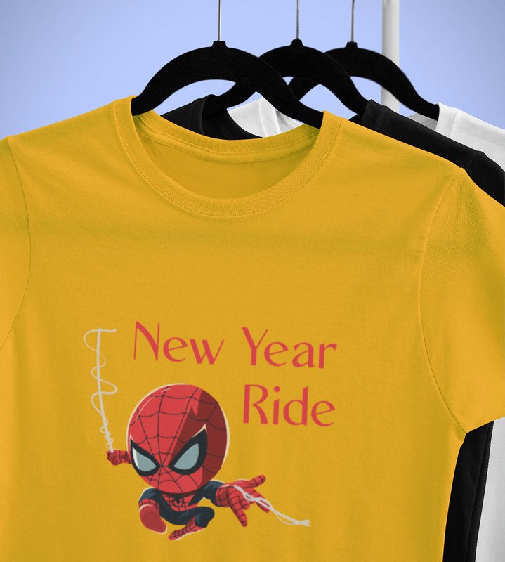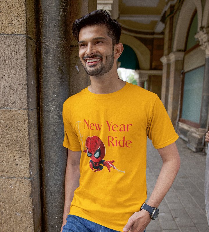 New Year Ride YellowPrinted T-shirt For Mens On New Year Theme