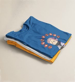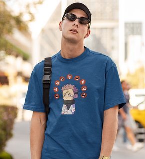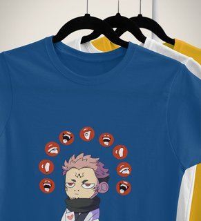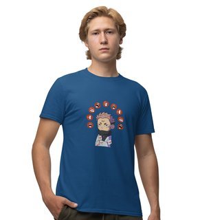 Nine Faced Anime Cotton Blue Tshirt For Mens and Boys