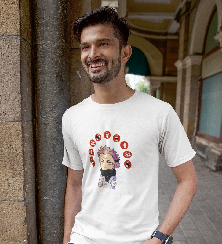 Nine Faced Anime Cotton White Tshirt For Mens and Boys