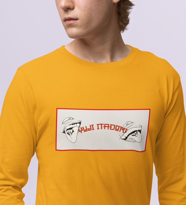 Nine Faced Anime Cotton Yellow Full Sleeves Tshirt For Mens and Boys