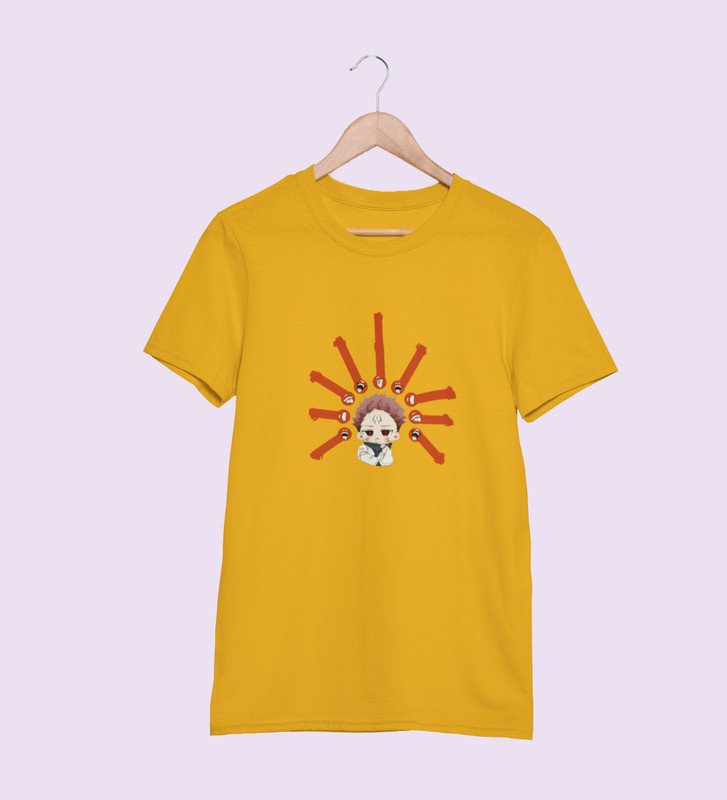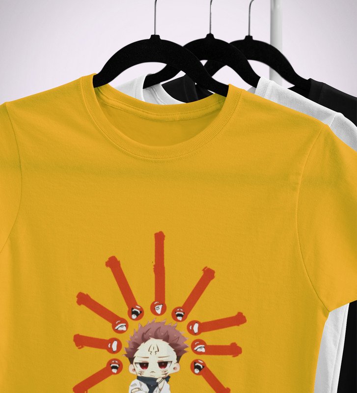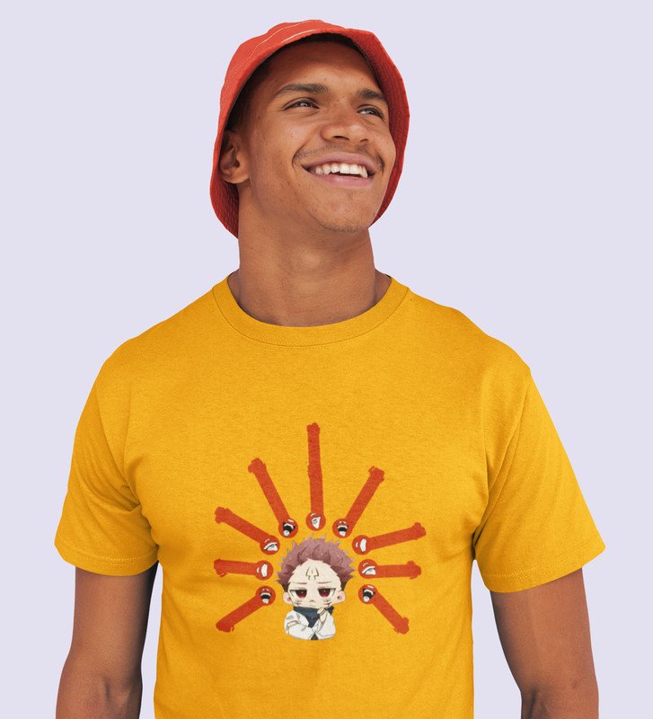 Nine Faced Anime Cotton Yellow Tshirt For Mens and Boys