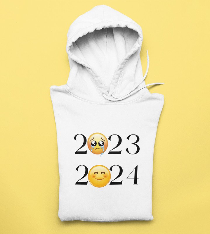 No More 2023 Only 2024, White New Year Printed Hoodies For Mens