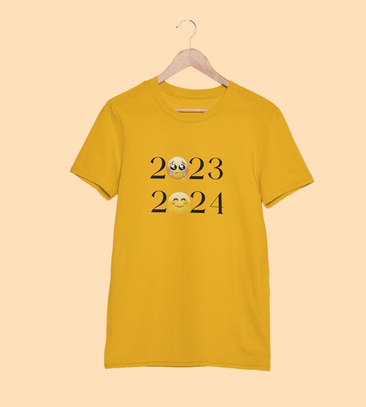 No More 2023 Only 2024 Yellow New Year Printed T-shirt For Mens
