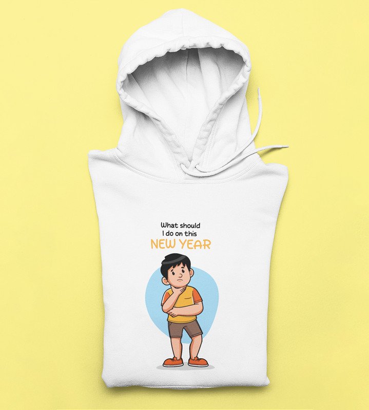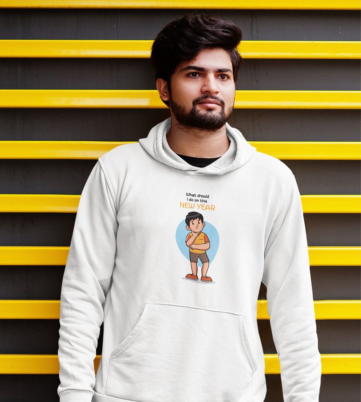 No Plans For New Year, White New Year Printed Hoodies For Mens