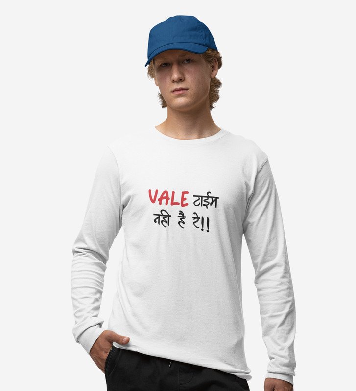 No Time For Valentine: (white) Full Sleeve T-Shirt For Singles.