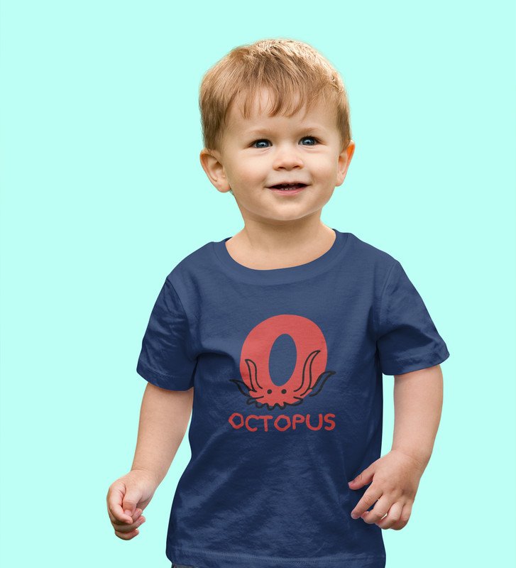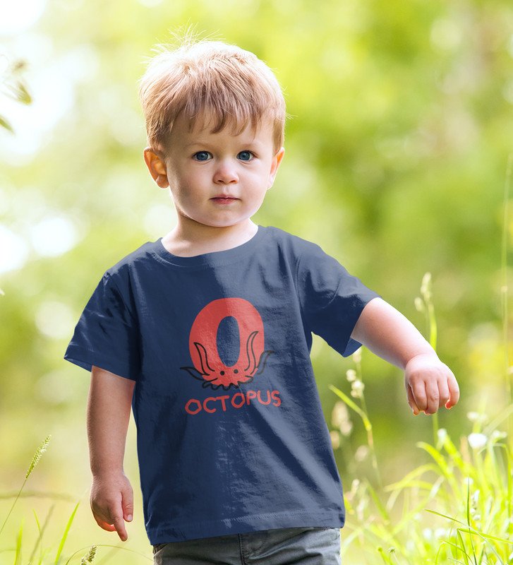 Ocean Octopus, Boys Printed Crew Neck tshirt (Navy blue)