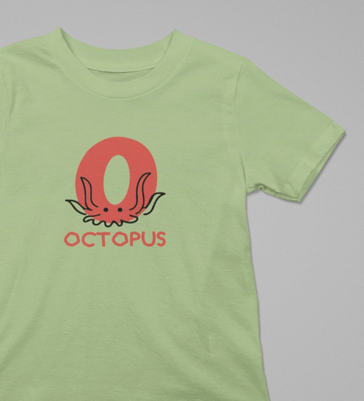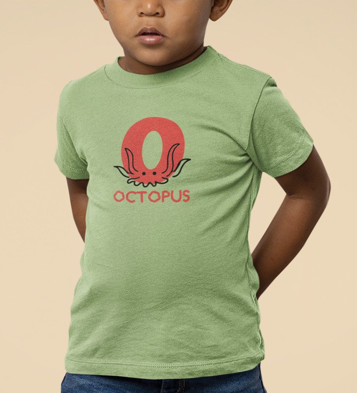 Ocean Octopus, Boys Printed Crew Neck Tshirt (Olive)