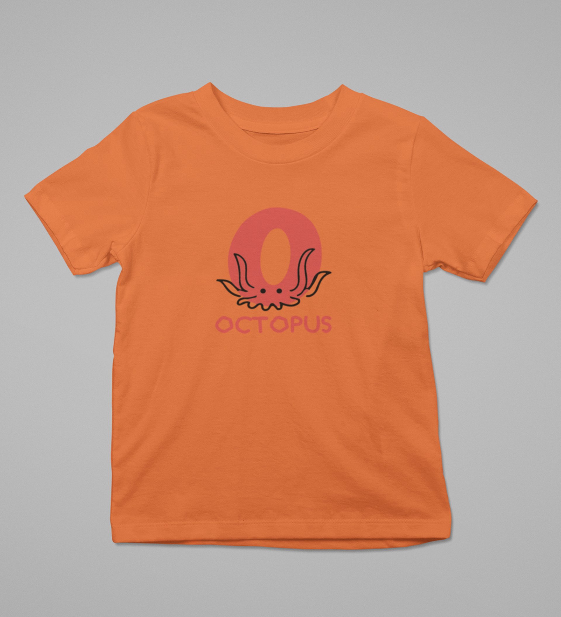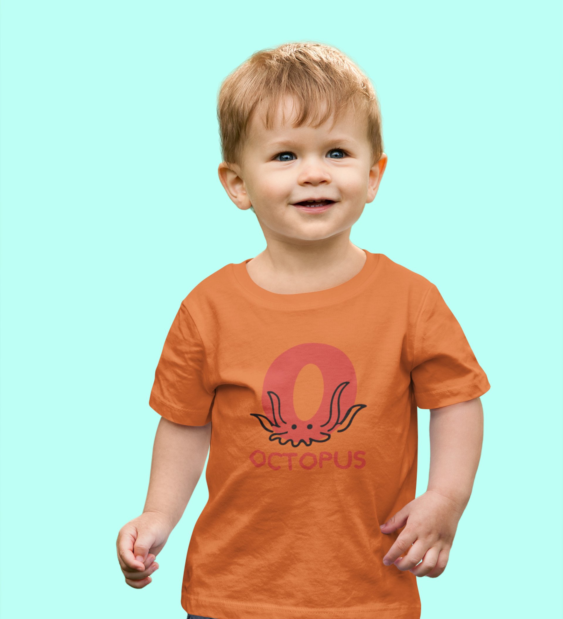 Ocean Octopus, Boys Printed Crew Neck Tshirt (orange)