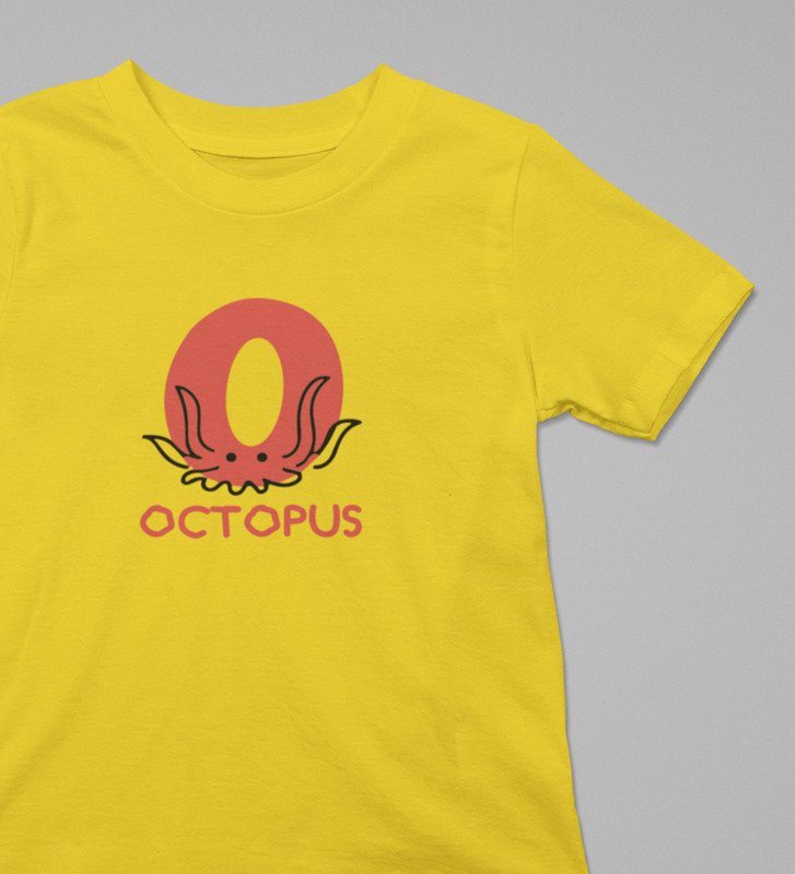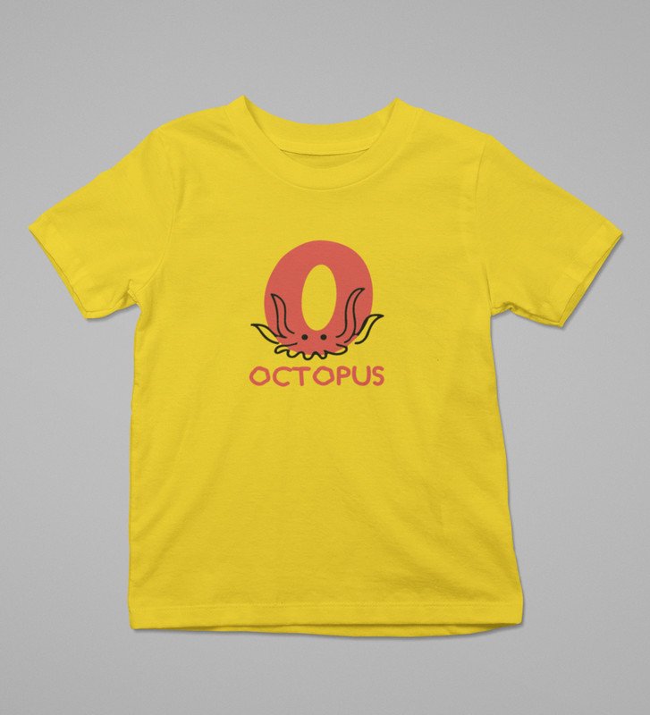 Ocean Octopus, Boys Printed Crew Neck Tshirt (Yellow)