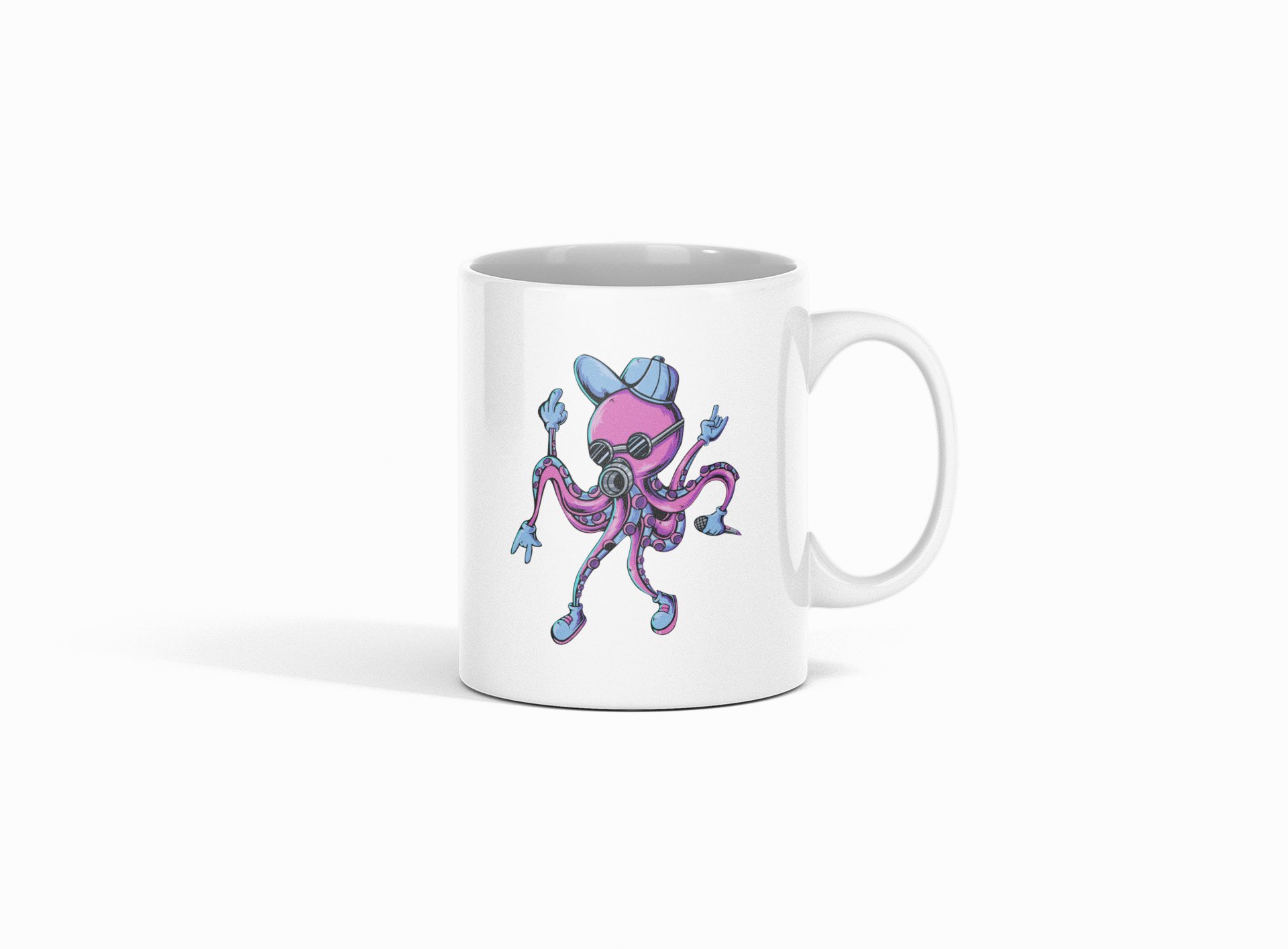 Octupus dancing - animation themed printed ceramic white coffee and tea mugs/ cups for animation lovers