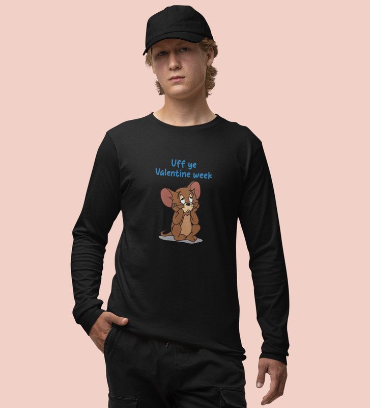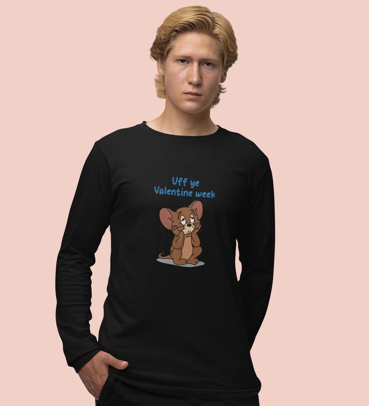 Oh No Valentine: Attractive Printed (black) Full Sleeve T-Shirt For Singles
