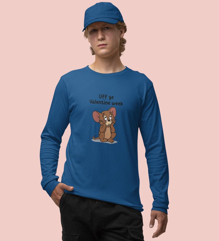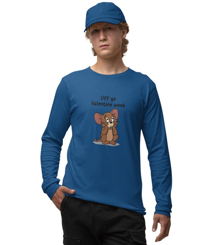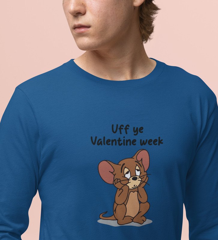 Oh No Valentine: Attractive Printed (blue) Full Sleeve T-Shirt For Singles