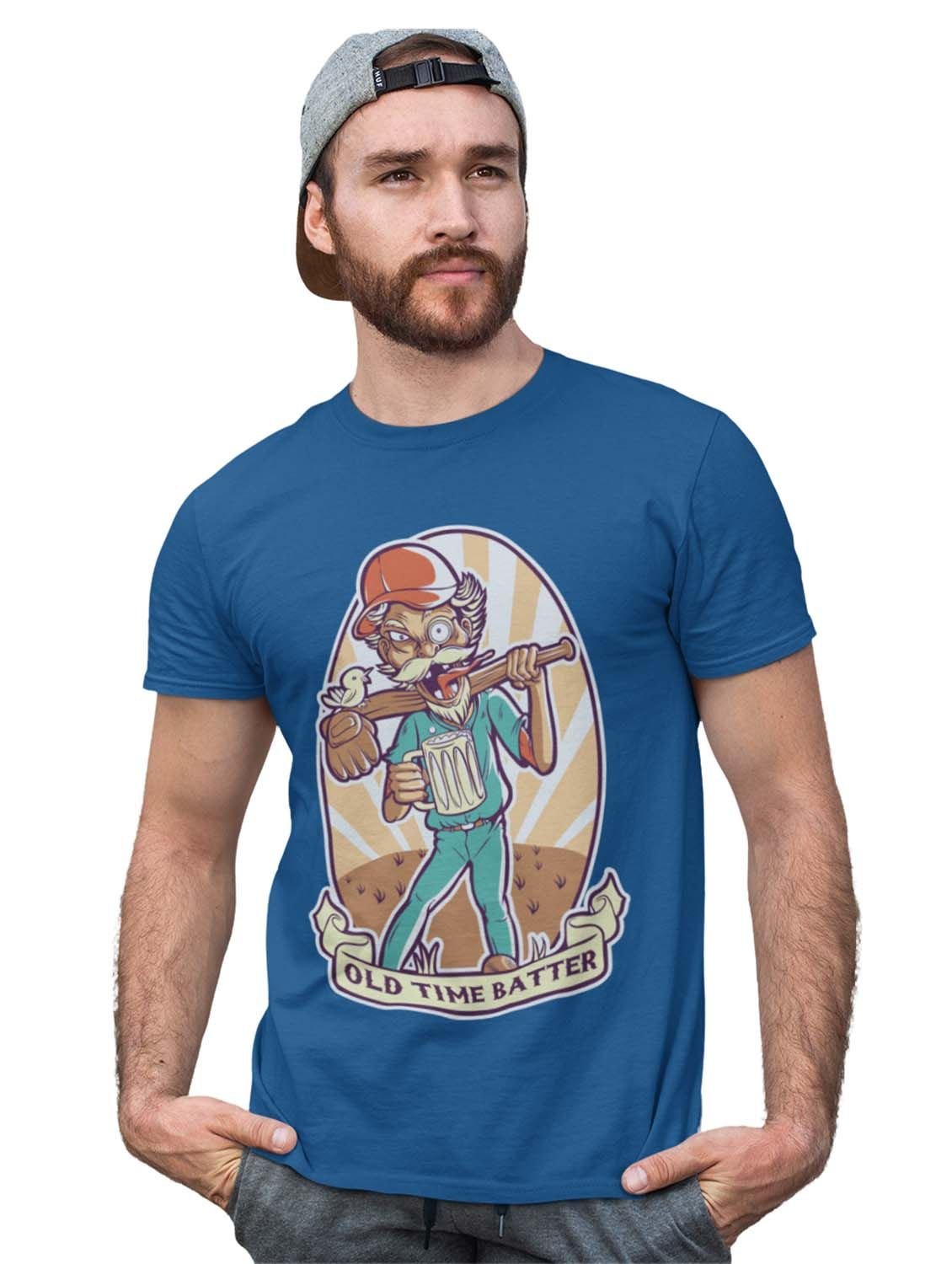 Grumpy Batter Blue Round Neck Cotton Half Sleeved T-Shirt with Printed Graphics