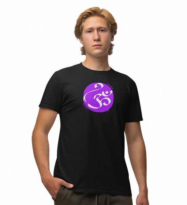 Om! Black Round Neck Cotton Half Sleeved Men T-Shirt with Printed Graphics