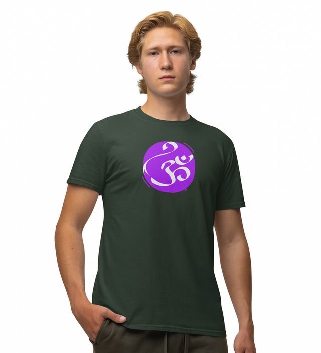 Om! Green Round Neck Cotton Half Sleeved Men T-Shirt with Printed Graphics
