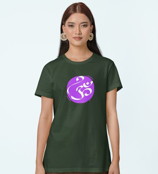 Om! Green Round Neck Cotton Half Sleeved Women T-Shirt with Printed Graphics