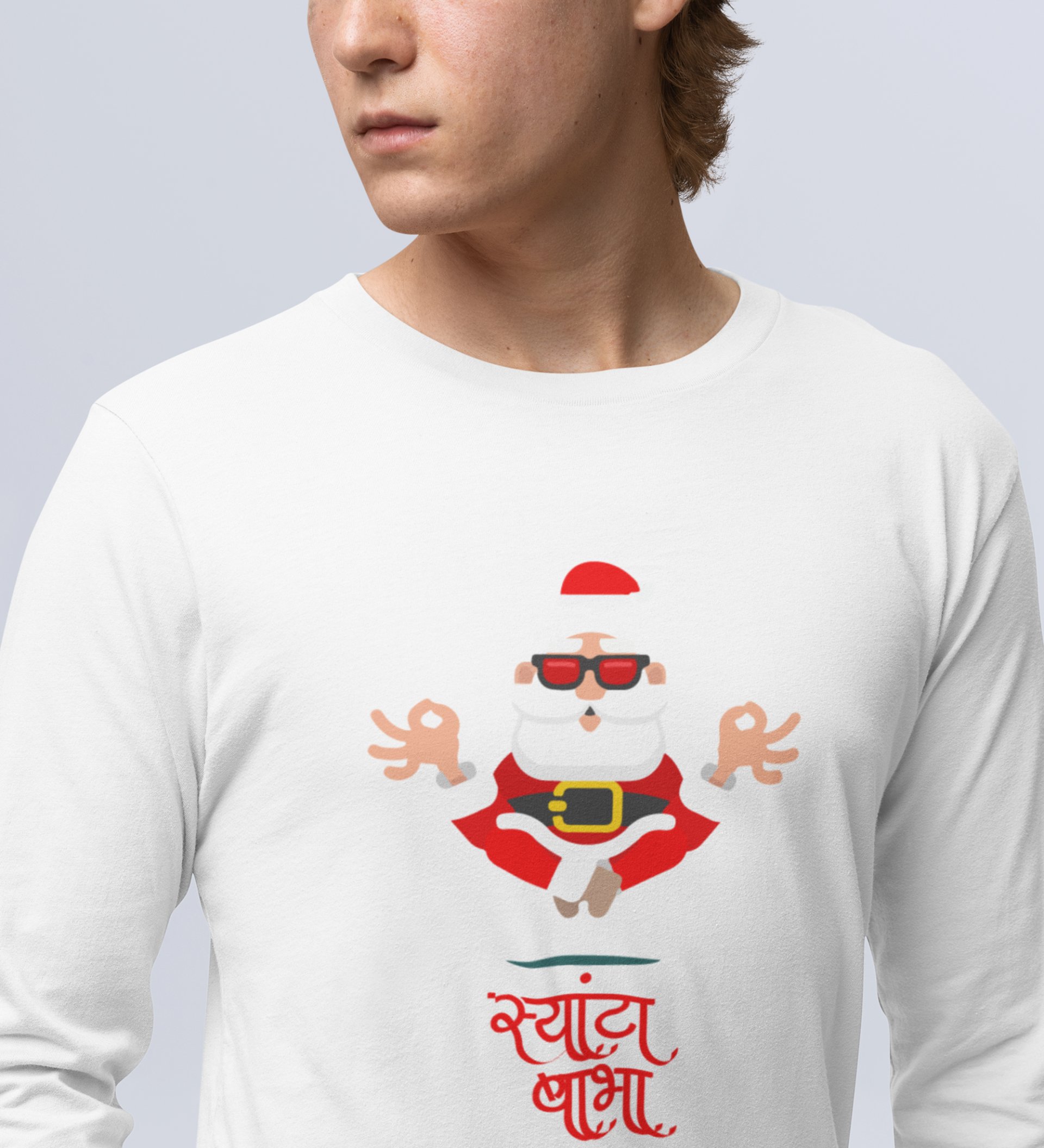 Om Santa Baba: Cute DesignerFull Sleeve T-shirt White Perfect Gifts For Boys girls