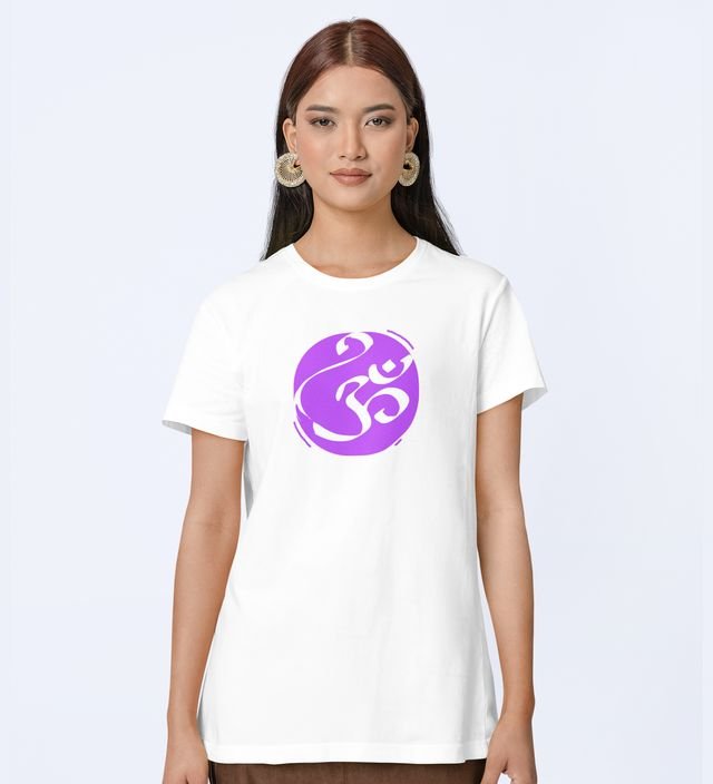 Om! White Round Neck Cotton Half Sleeved Women T-Shirt with Printed Graphics