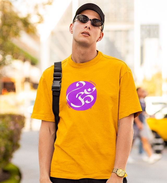Om! Yellow Round Neck Cotton Half Sleeved Men T-Shirt with Printed Graphics