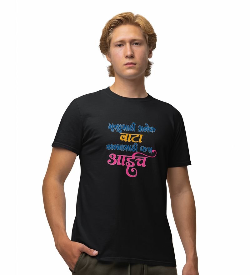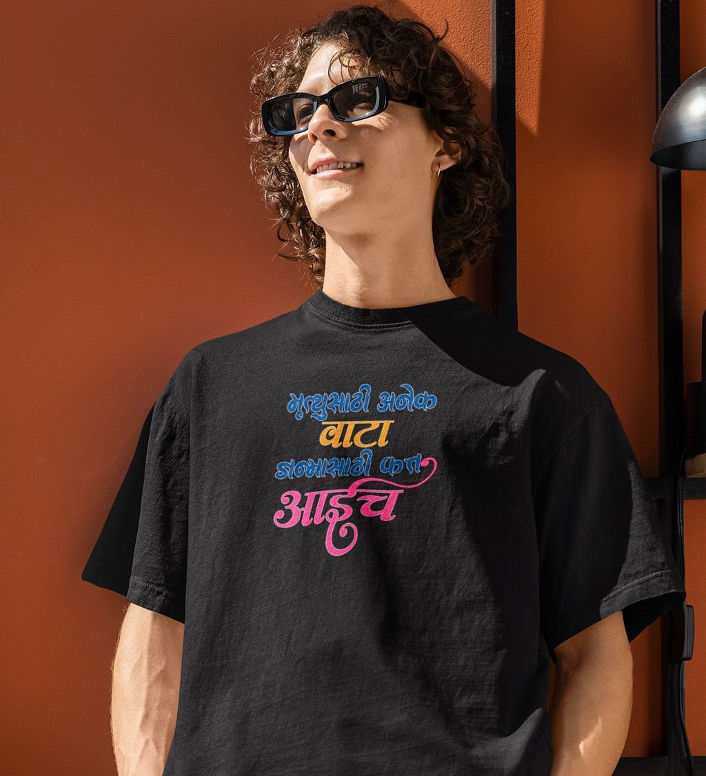 Bring humor and playfulness to your wardrobe with our Marathi Slangs T Shirts, inspired by the famous Marathi phrases Ideal for those with a fun loving personality this shirt is made from soft durable fabric Its unique design and catchy phrase are sure to make you the center of attention at any casual event
