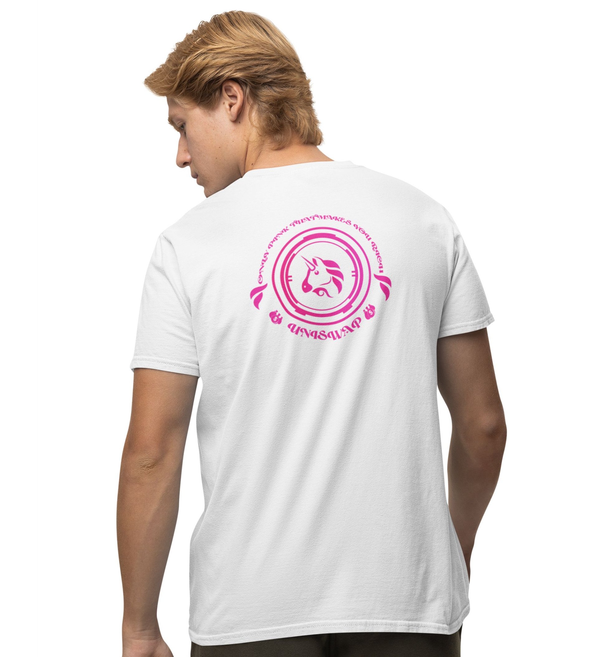 Only Pink Wings White Round Neck Cotton Half Sleeved Men's T Shirt with Printed Graphics