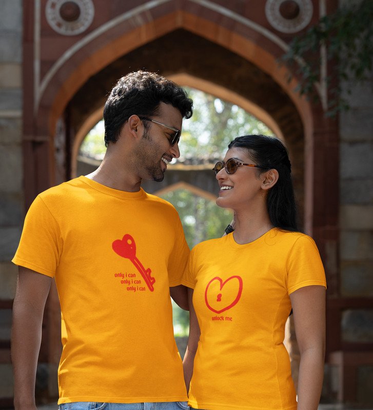 Only You Can Unlock Me Printed Couple (Yellow) T-shirts