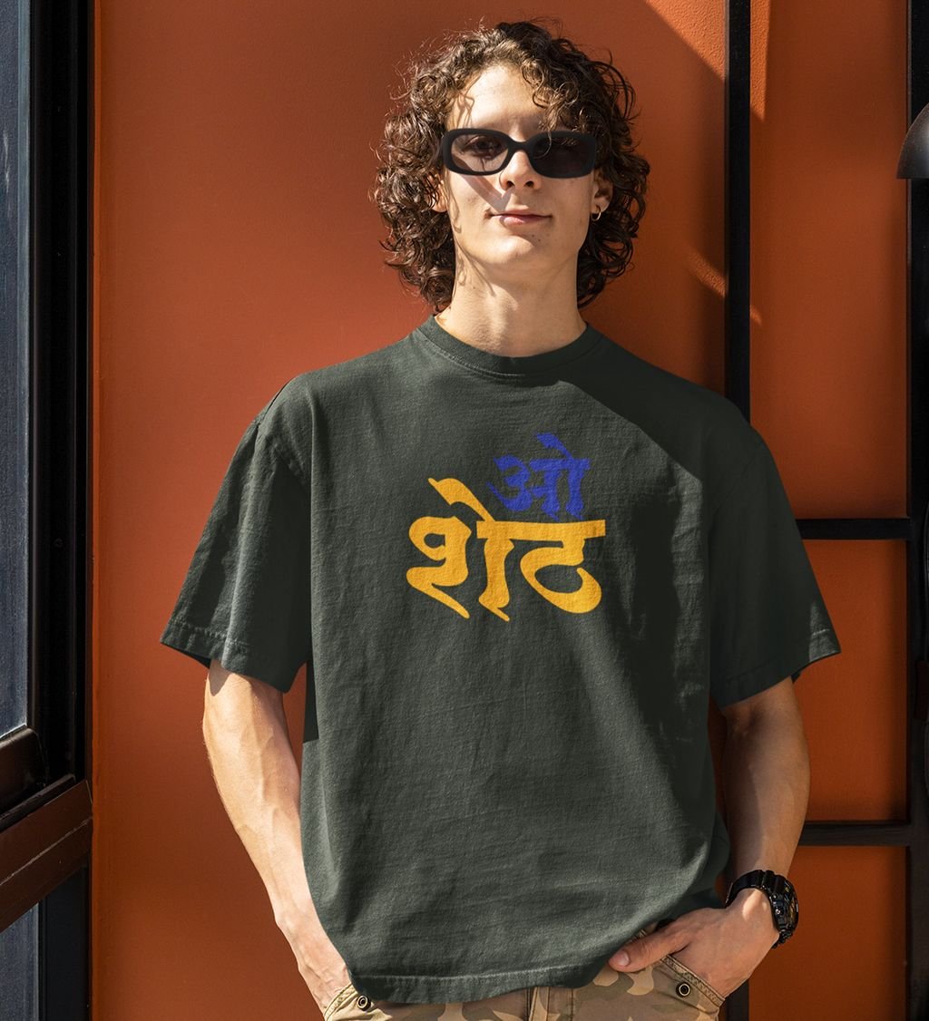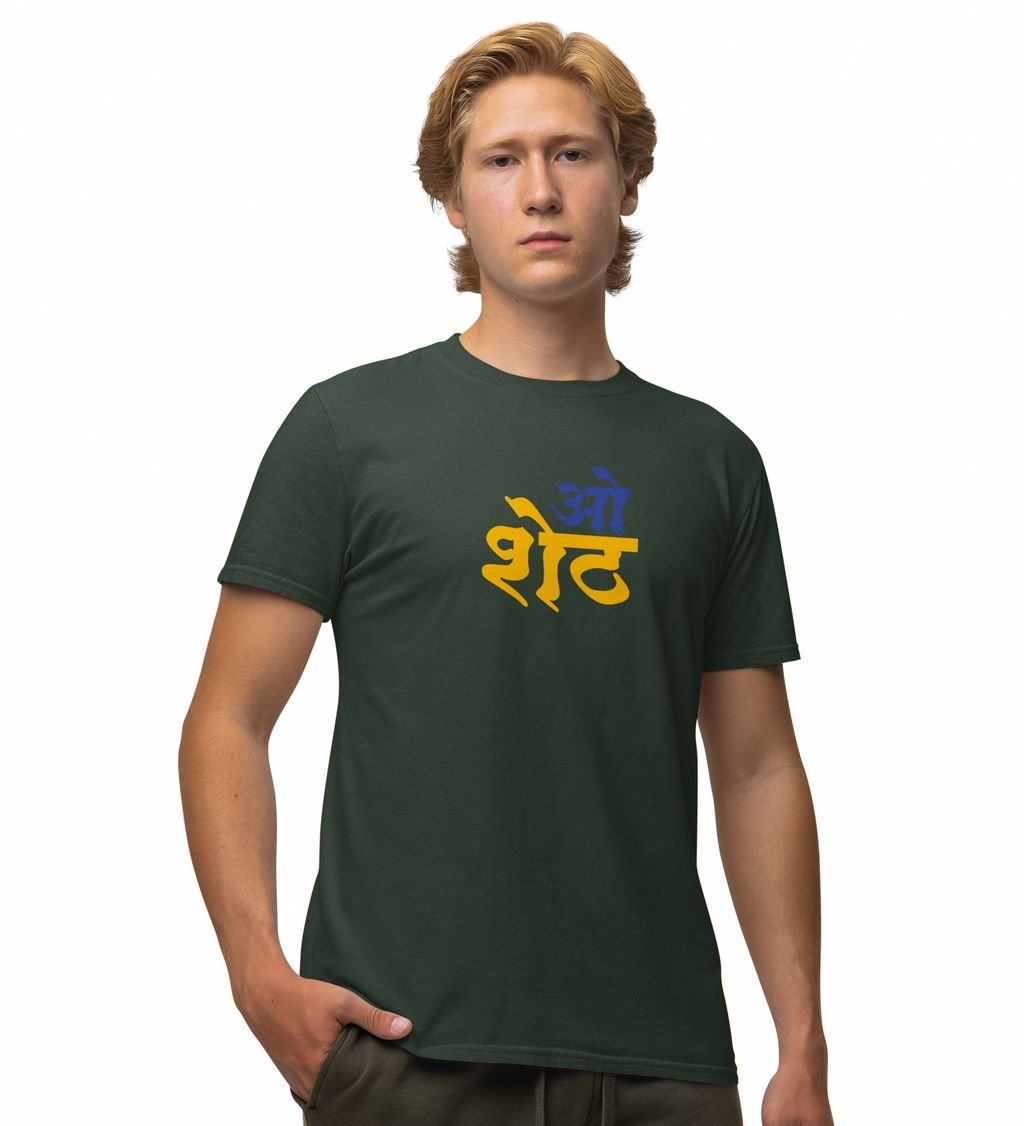 Oo Sheth Green Round Neck Cotton Half Sleeved Men T Shirt with Printed Graphics