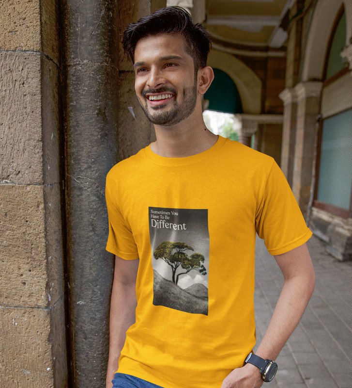 Out Of the Box, Signature Streetwear: Yellow Men's Oversized Tee with Front Graphic Appeal