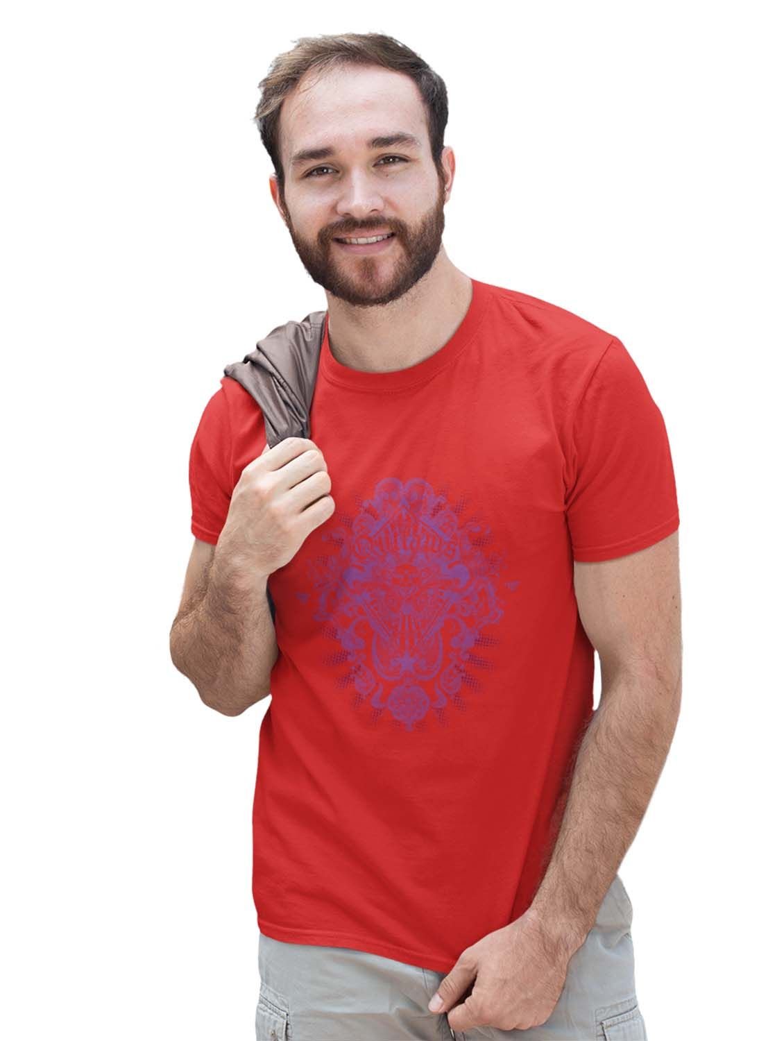 The Karma Red Round Neck Cotton Half Sleeved T-Shirt with Printed Graphics