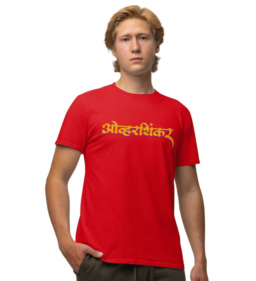 Overthinker Red Round Neck Cotton Half Sleeved Men T Shirt with Printed Graphics