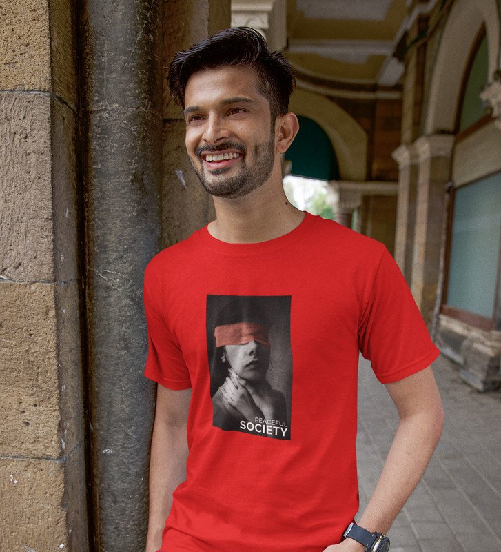 Pacifist Society, Urban Legend Series: Red Men's Oversized Round Neck T-Shirt with Front Print