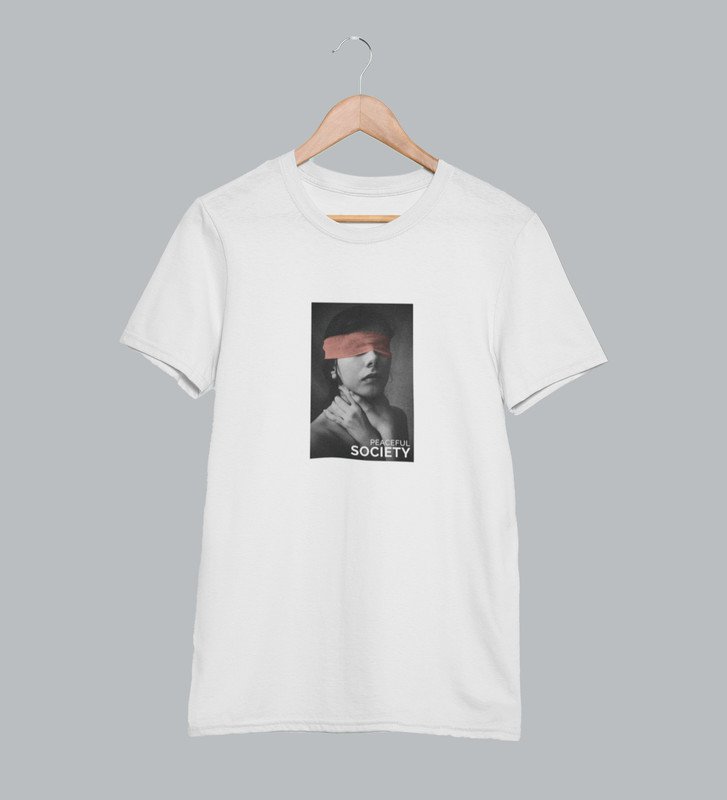 Pacifist Society, Urban Legend Series: White Men's Oversized Round Neck T-Shirt with Front Print