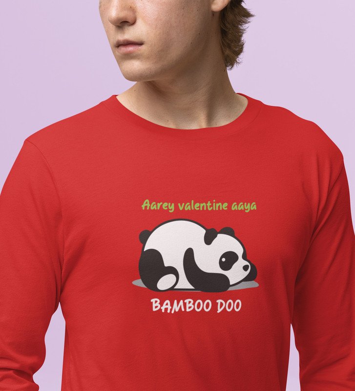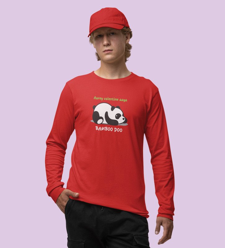 Panda Wants Bamboo: Attractive Printed (red) Full Sleeve T-Shirt For Singles