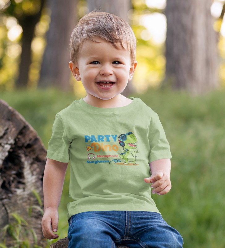 Party Animal Dino,Boys Cotton Printed T-shirt (olive green)