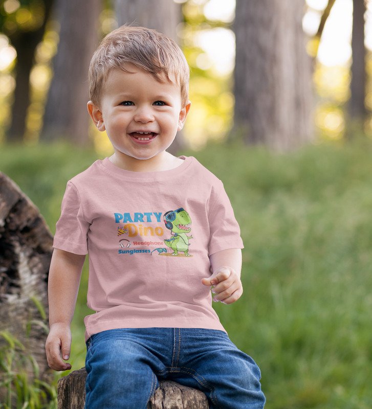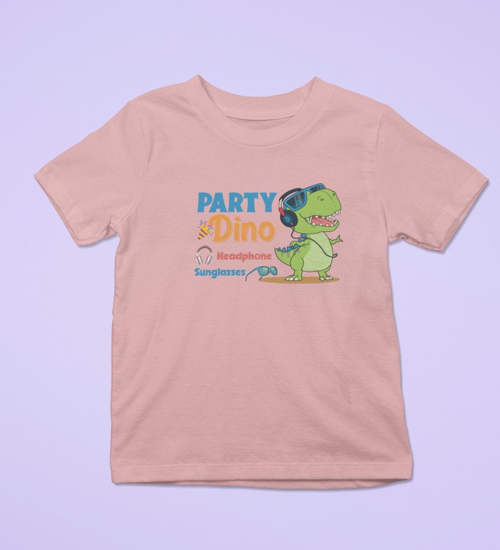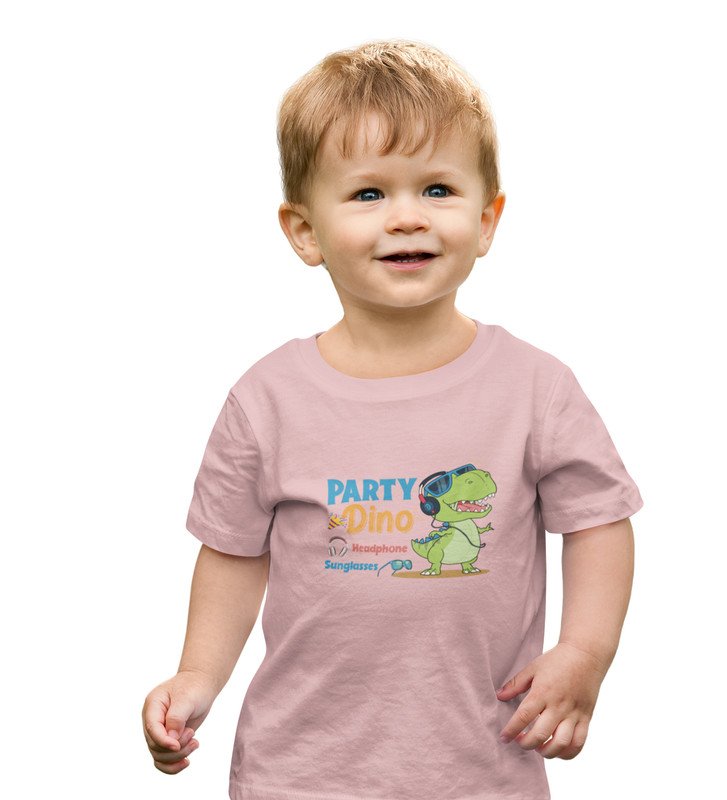 Party Animal Dino,Boys Cotton Printed Tshirt (baby pink)