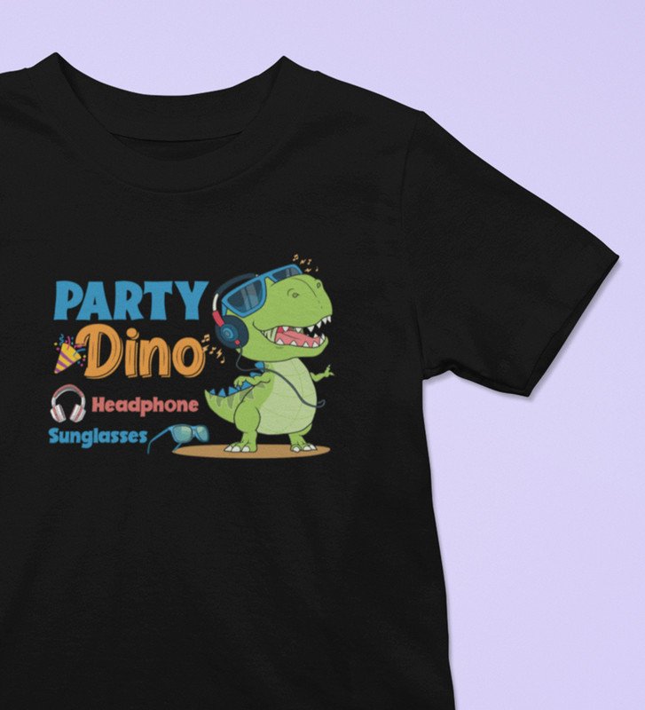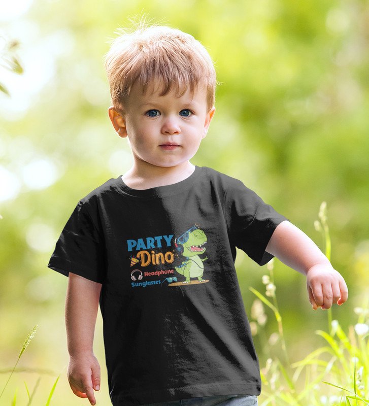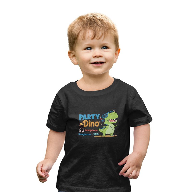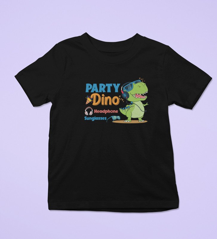 Party Animal Dino,Boys Cotton Printed Tshirt (black)