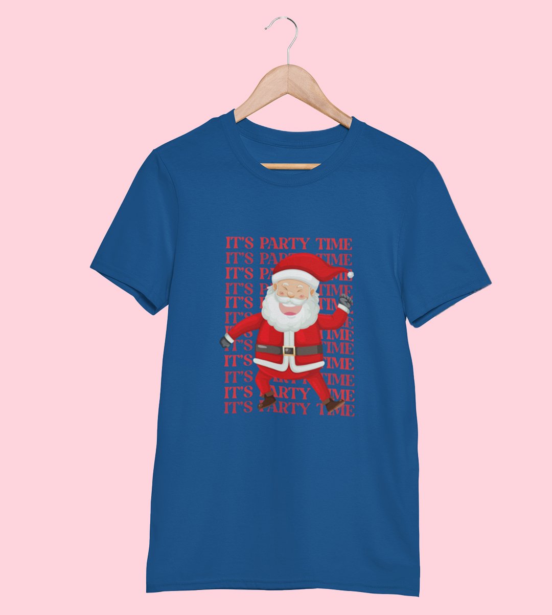 Party Time Santa: Happy Santa Printed Amazing T-shirt (Blue) Best Gift For Secret Santa