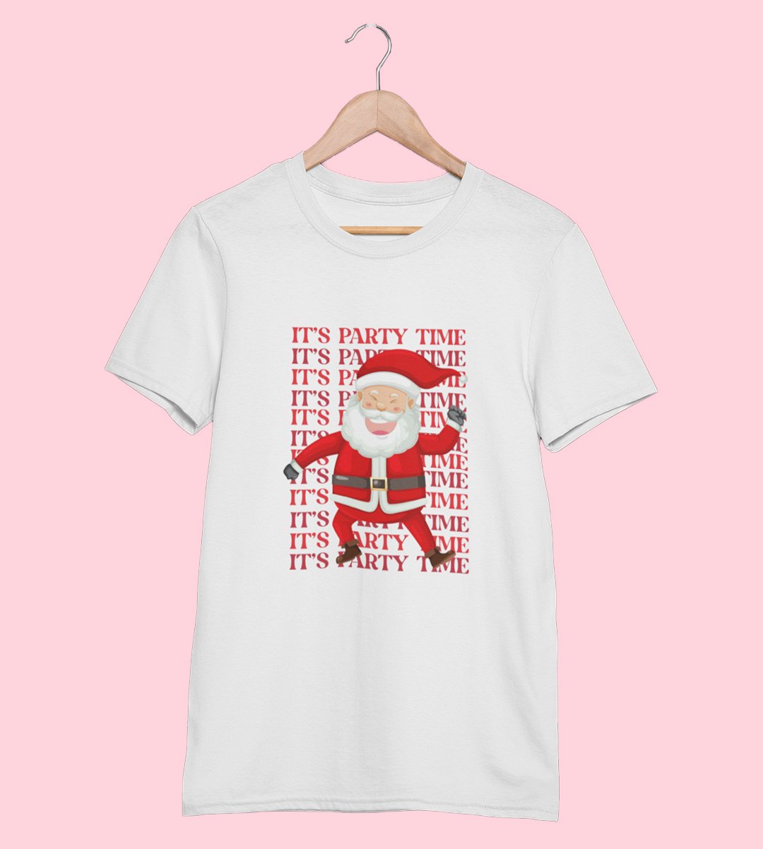 Party Time Santa: Happy Santa Printed Amazing T-shirt (White) Best Gift For Secret Santa