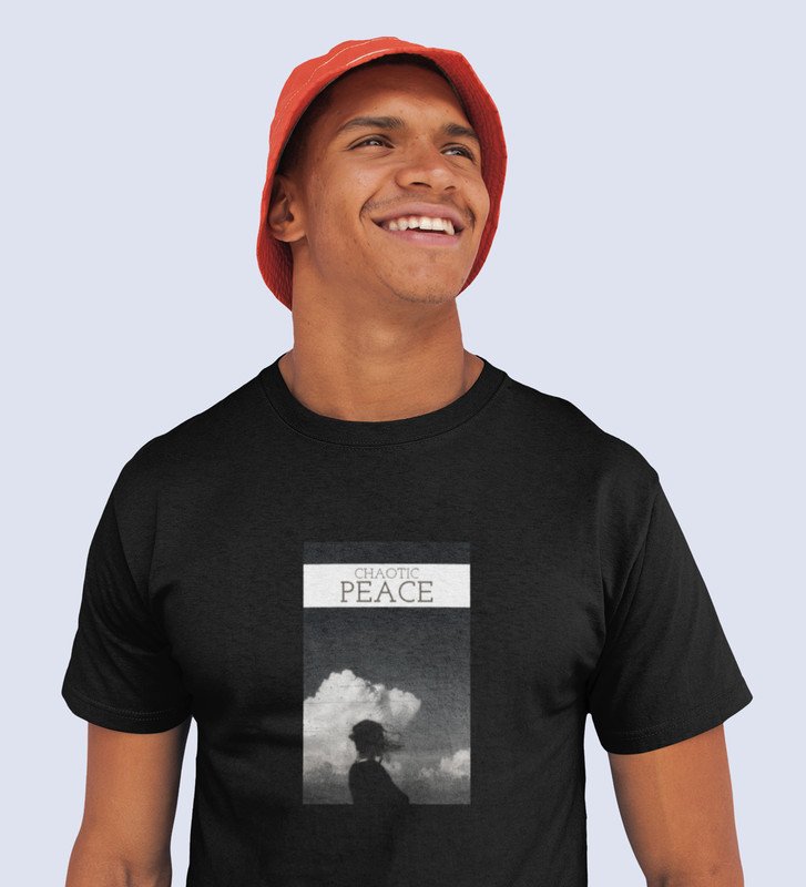 Peaceful Chaos, Black Cityscape Chronicles: Front Printed Round Neck Tee - Men's Edition