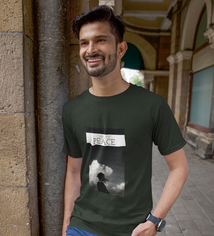 Peaceful Chaos, Green Cityscape Chronicles: Front Printed Round Neck Tee - Men's Edition