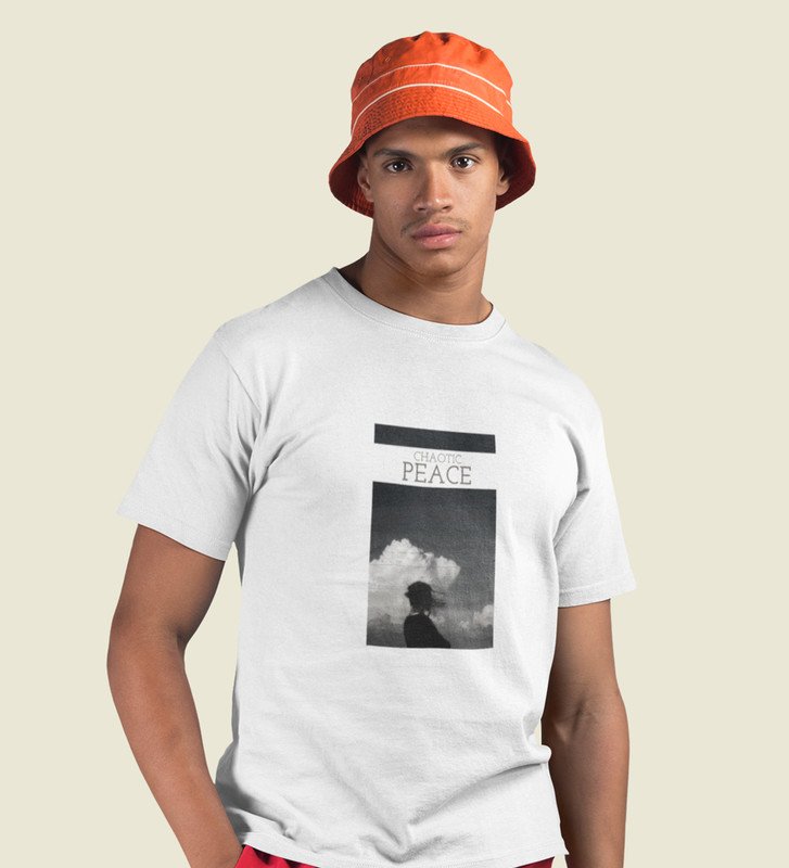 Peaceful Chaos, White Cityscape Chronicles: Front Printed Round Neck Tee - Men's Edition