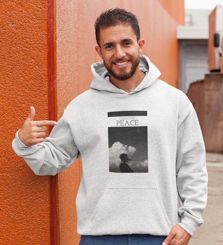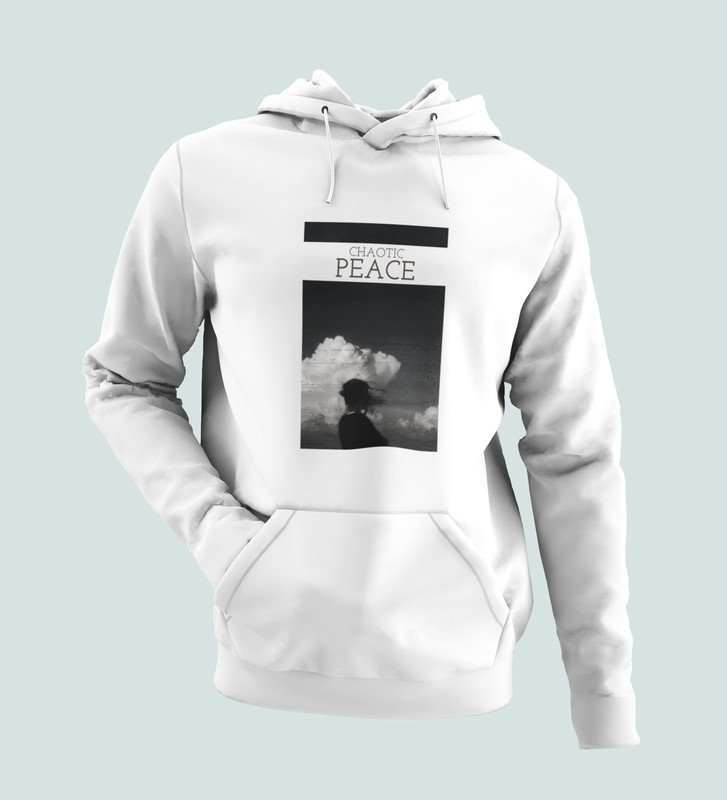 Peaceful Chaos,White Cityscape Chronicles: Front Printed Round Neck Hoodie - Men's Edition