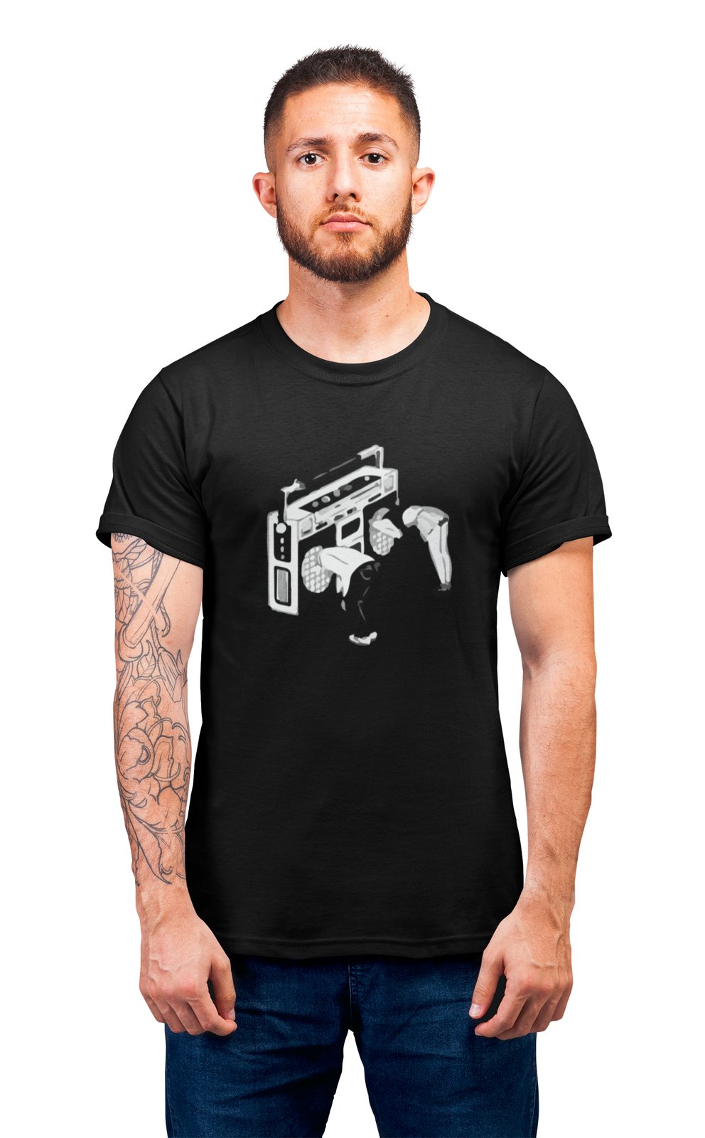 People Stuck In Radio -Black- Men's - printed T-shirt - comfortable round neck Cotton