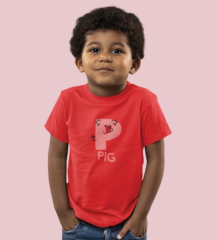 Pepper Pig, Boys Cotton Text Print Tshirt (Red)